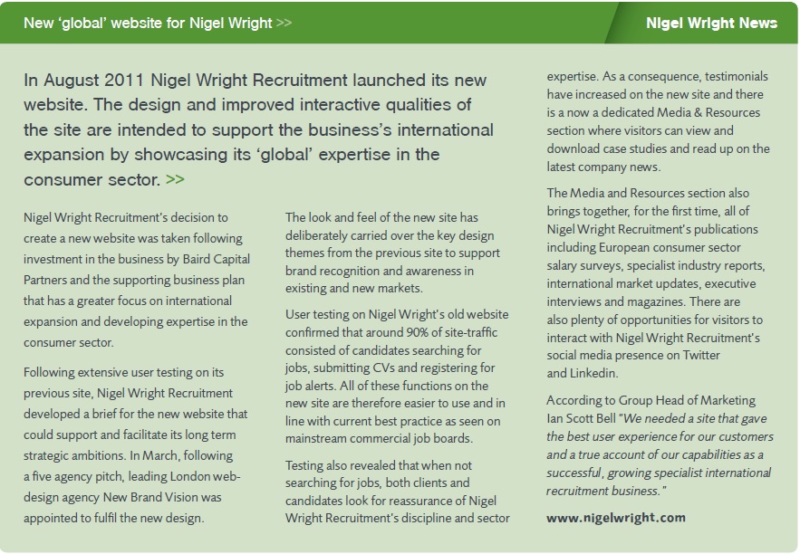 Advertorial: UK Consumer Industry Salary Survey 2012 – Nigel Wright Group