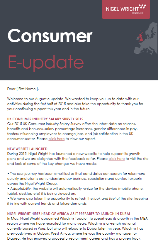 E-Marketing: Consumer Industry Summer E-Update – Nigel Wright Group